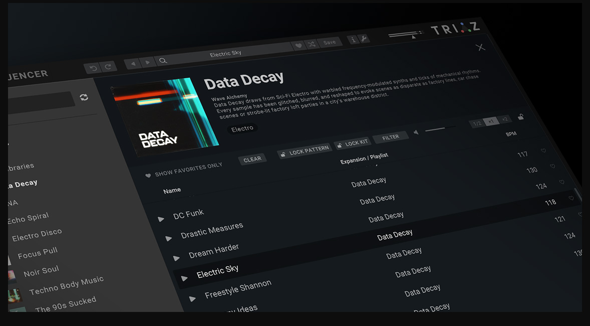 Data Decay is a Triaz / Triaz Player Expansion, featuring 425 drum samples and 80 finely crafted Triaz / Triaz Player presets and rhythms.