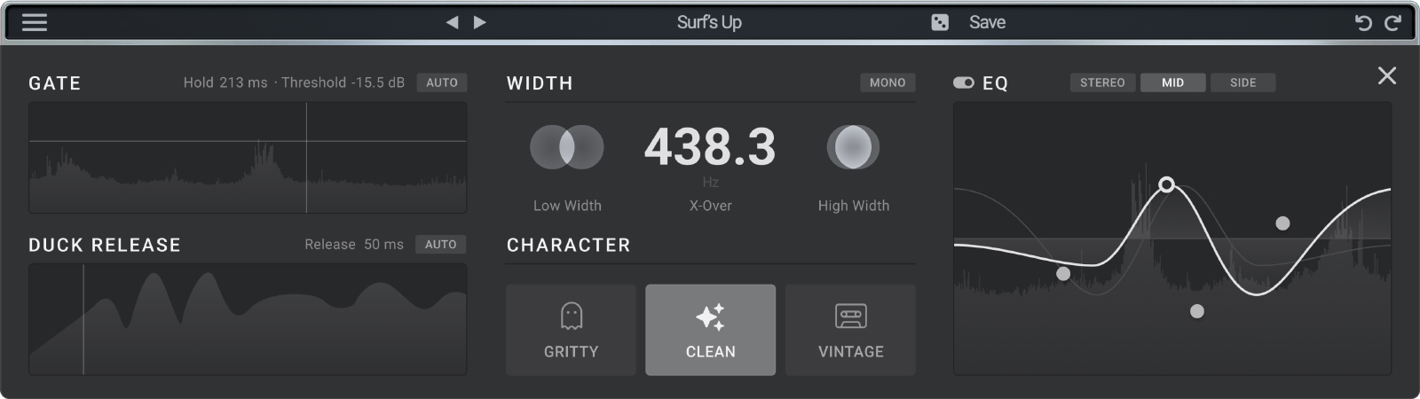 • 4 band Output EQ with mid / side functionality