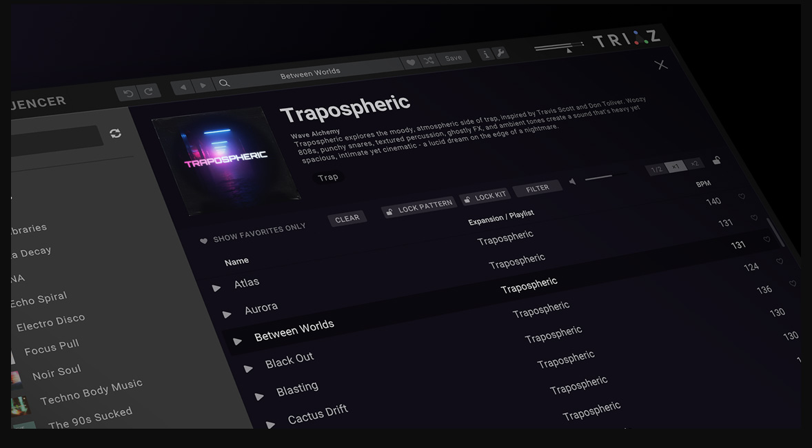 Trapospheric is a Triaz / Triaz Player Expansion, featuring 251 drum samples and 80 finely crafted Triaz / Triaz Player presets and rhythms.